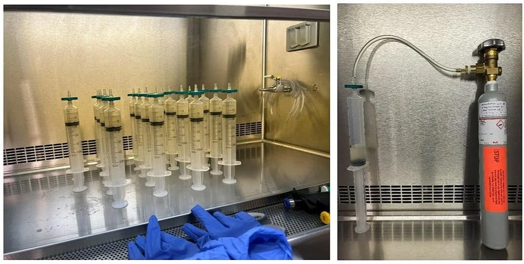 Experimental setup for evaluating free-living bacteria (left) and enriching the environment with 15N2 gas (right).